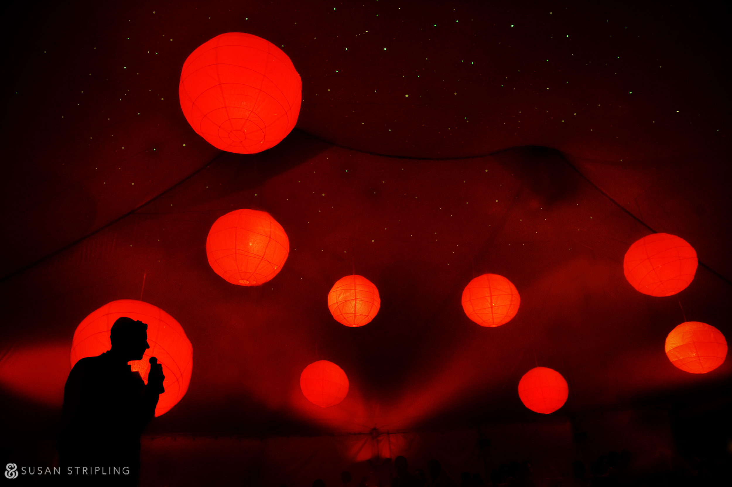 A man, recognized as a Grand Master, is standing under a tent adorned with red lanterns at the prestigious WPPI event.